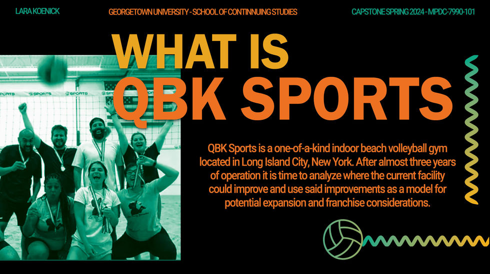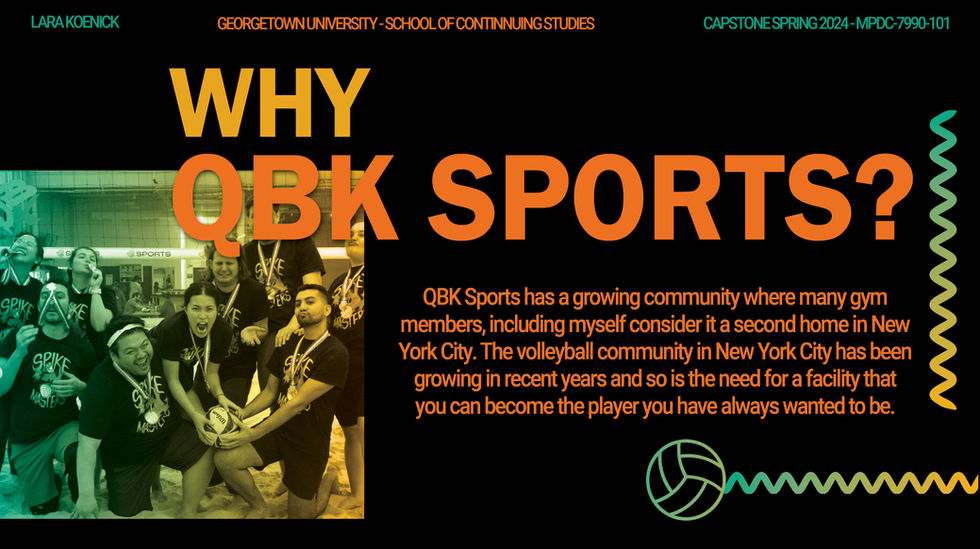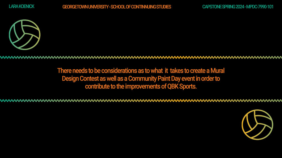 Lara Koenick Designs recently collaborated with QBK Sports as part of her Graduate Capstone and personal passion to design and develop a community mural event aimed at enhancing their court and facility maintenance. Located in Long Island City, New York, QBK Sports is a unique indoor beach volleyball gym seeking to elevate and improve its current facility after almost three years of operation. This project embodies Lara Koenick Designs' commitment to transforming spaces and enhancing community connections through creative design solutions.